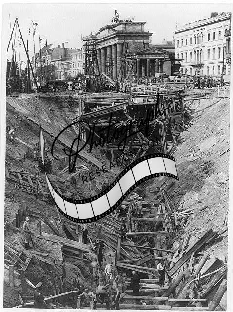 German workers clearing debris,subway cave-in,Brandenburg Gate,Berlin,Germany