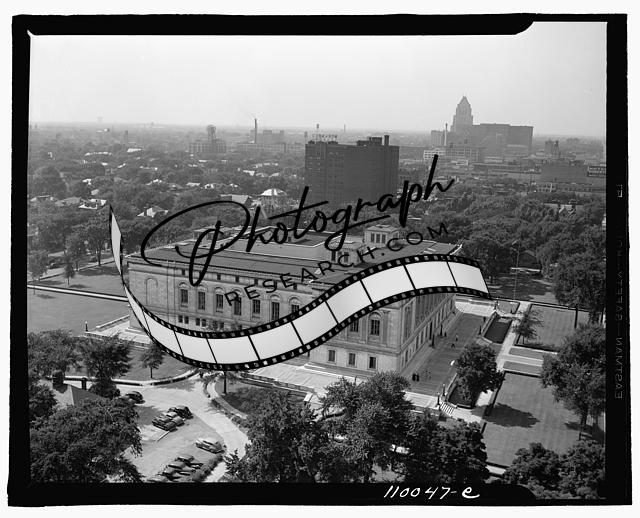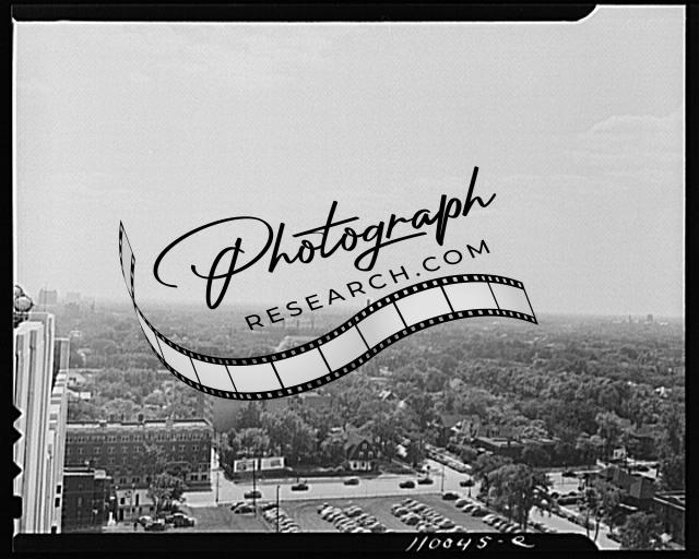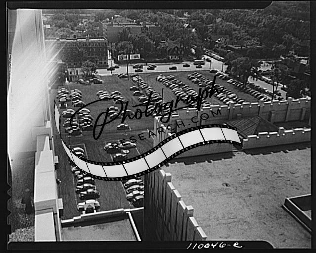 Title: Detroit, Michigan. Tops of buses, automobiles and traffic island seen from the 14th story of the Fisher Building