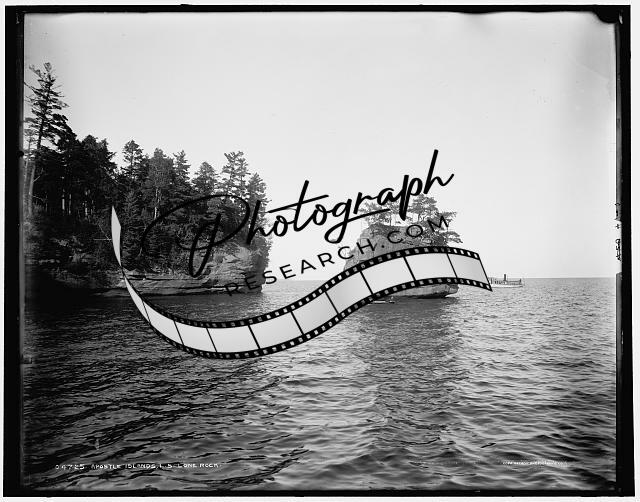Apostle Islands,Lake Superior,Lone Rock,formations,boats,water,Wisconsin,WI,1880