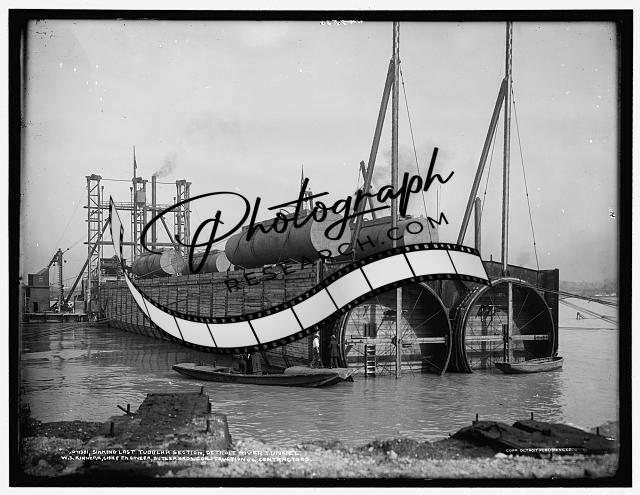 Sinking last tubular section,Detroit River tunnel,railroads,Michigan,MI,c1900