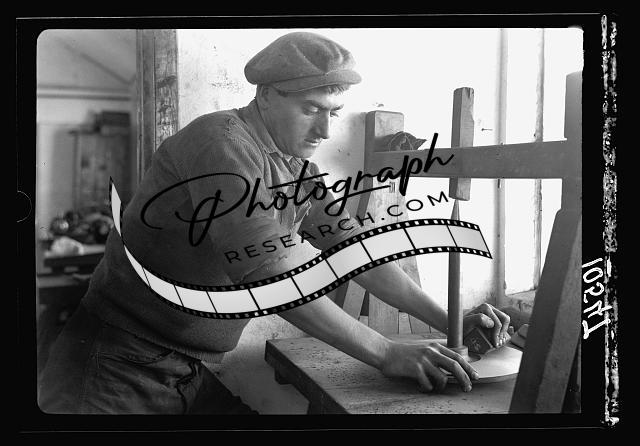 Title: Jewish factories in Palestine on Plain of Sharon & along the coast to Haifa. Tel Aviv. Diamond works. Applying diamond dust on discs