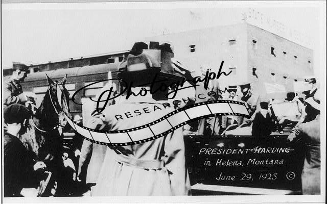 Warren G. Harding,standing in automobile,waving hat,Helena,Montana,MT,1923