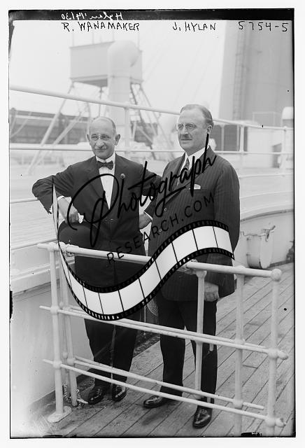 Reuben Wanamaker,J. Hylan,R.Enright,shaking hands,ship passengers,lifeboats,deck