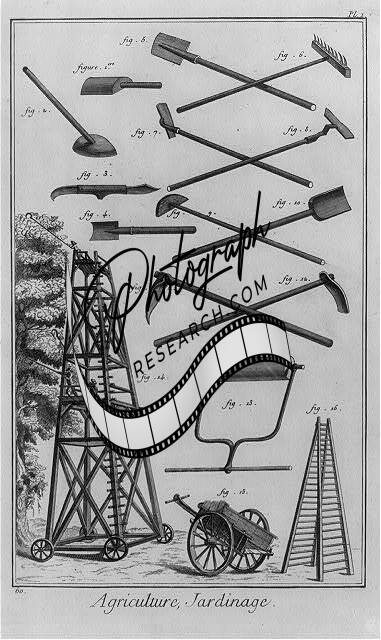 Caption card tracings: France Misc. 1770's; Agriculture; Farm machinery & tools; PI Works; Shelf. Encyclopédie. Diderot, Denis, 1713-1784.