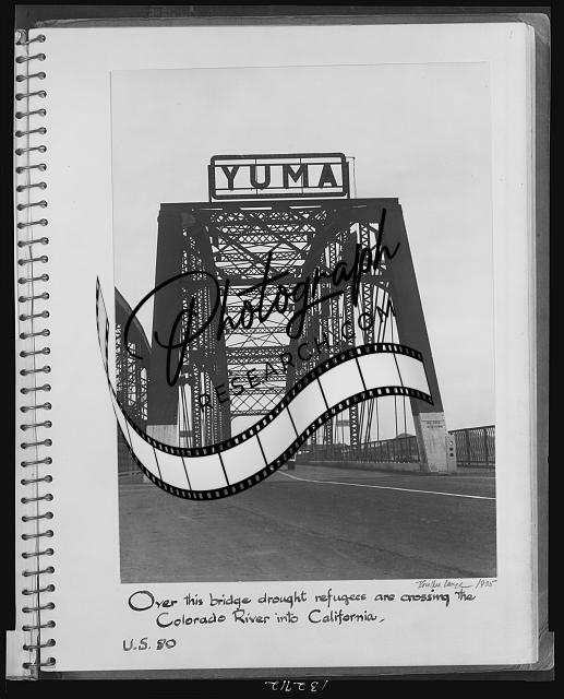 Bridge,drought refugees,Colorado River,Yuma,CA,c1935