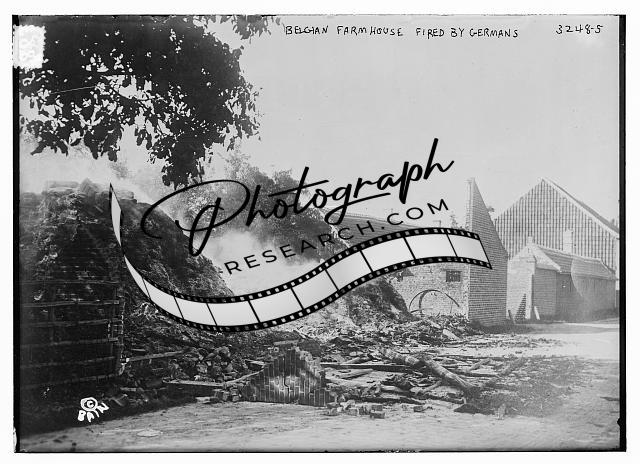 Belgian Farm House -- fired by Germans,rubble,smoke,Bain News Service