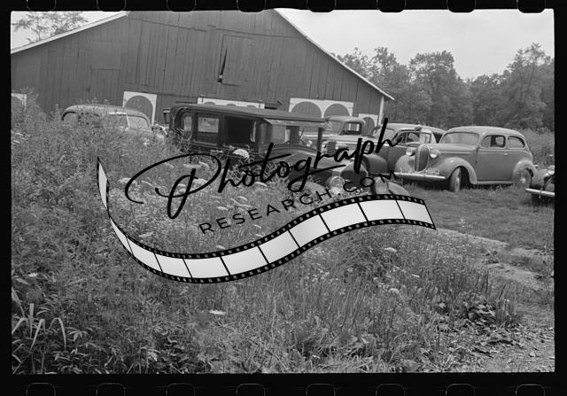 Autos of spectators attending farmland auction,New Carlisle,Ohio,OH,1938,FSA,1