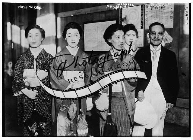 Michie family,men,women,kimonos,clothing,Japan,group portraits,Bain News Service