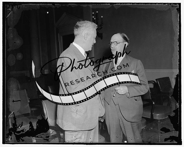 Title: Discuss social security problems. Washington, D.C., Nov. 5. Labor troubles were forgotten today as their leaders met today with business and industrial heads to discuss possible changes in the Social Security Act. The occasion was the first meeting of the Social Security Advisory Council. Left to right: Gerard Swope, President of General Electric Co.; Philip Murray, C.I.O. leader; and E.R. Stettin US [...] new head of the U.S. Steel Corp. 11/5/37