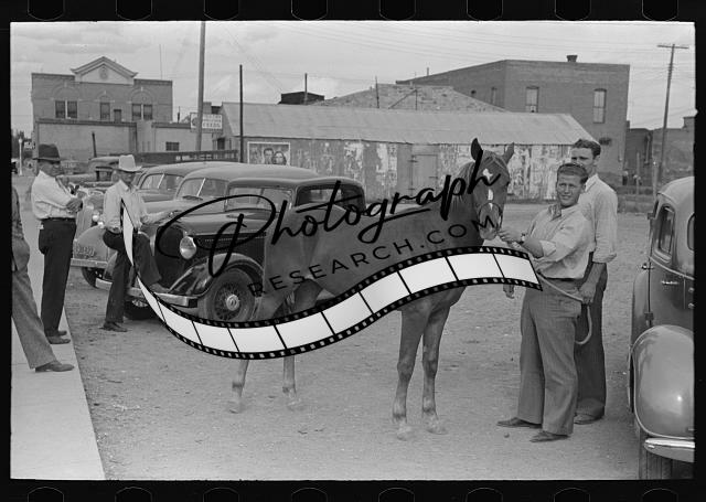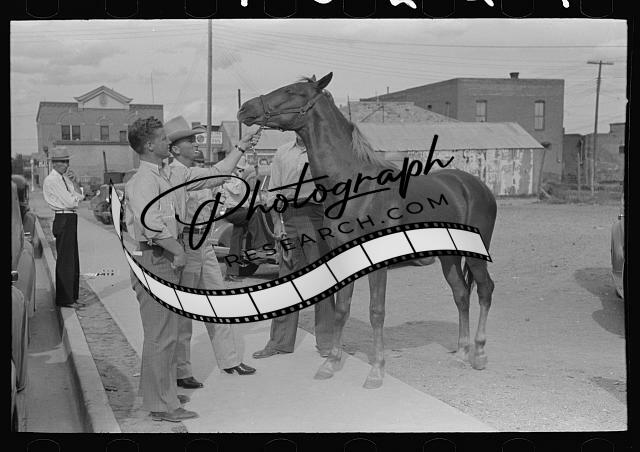Displaying a horse for sale on the streets of Alpine,Texas,TX,FSA,May 1939,2