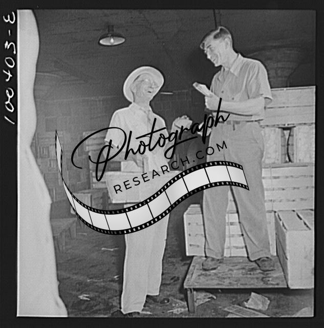 Title: Washington, D.C. District grocery store warehouse on 4th Street S.W. Each store's order is loaded onto a small truck and checked, first by a foreman, again by a checker at the door before being loaded onto a truck. Produce department