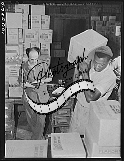 Title: Washington, D.C. Checking merchandise in the grocery department of the District grocery store warehouse