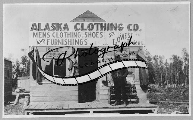 Man in front of Alaska Clothing Company Store,Anchorage,AK,1900-1916,Man
