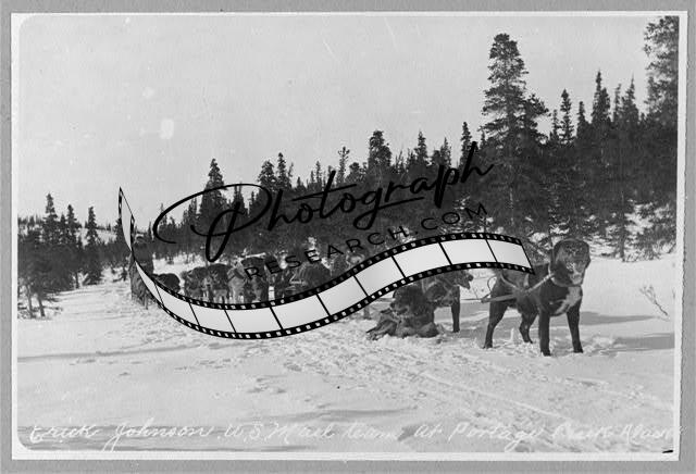 Erick Johnson with U.S. mail team,Portage Creek,Alaska,AK,1900-1927,Snow