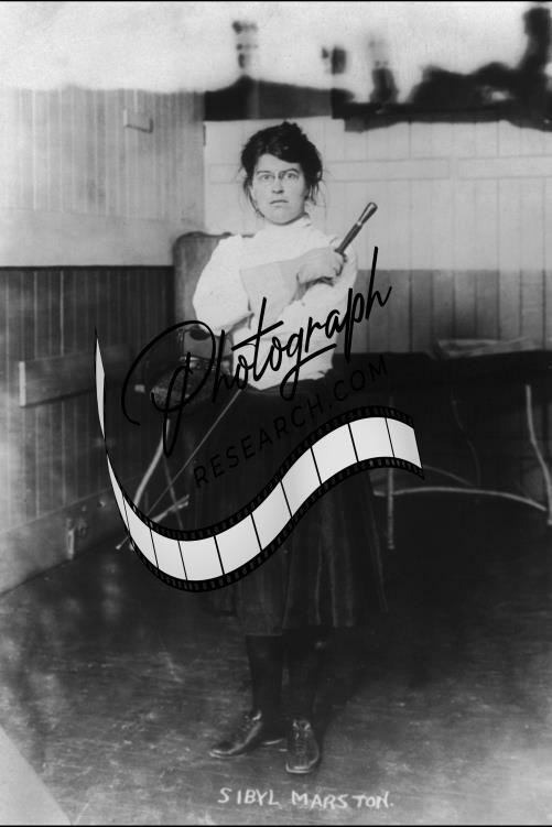 Sibyl Marston holding a foil in a fencing position,1910-1920,fencer,women,sports