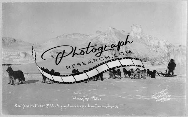 Colonel Ramsay's entry,winning dog sled team,3rd All Alaska Sweepstakes,Johnson
