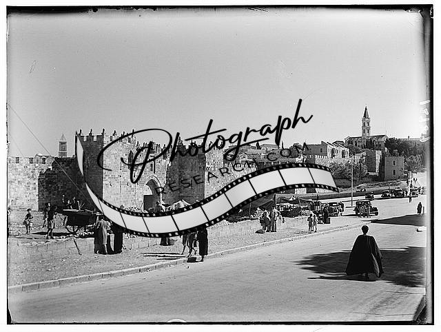 Damascus Gate & orange piles,distant,May 6,1944,Jerusalem,Middle East,Matson