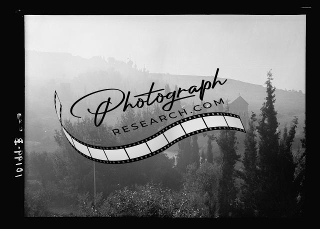 Garden of Gethsemane seen through fog from across the valley,Jerusalem,Israel,1