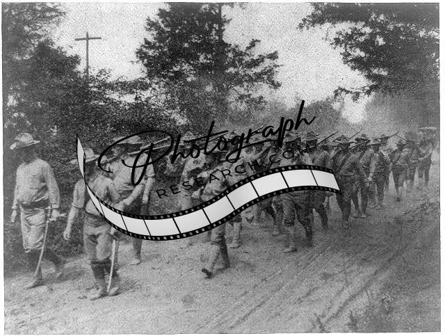 Infantry going,action,troop movement,soldiers,rifles,uniforms,hats,march,1904