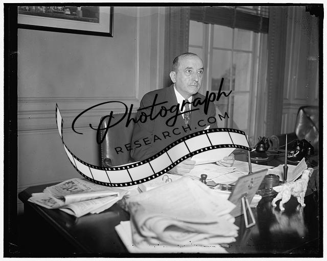 RFC Head,Jesse Jones,George Butler,desks,offices,politicians,Washington DC,1937