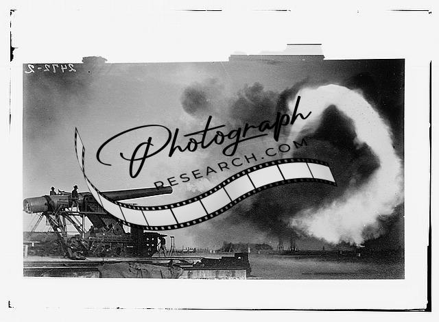 Coastal defense gun on a disappearing mount,1910-1915,cannon,smoke