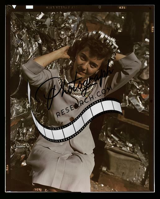 Title: Annette del Sur public[iz]ing salvage campaign in yard of Douglas Aircraft Company, Long Beach, Calif.