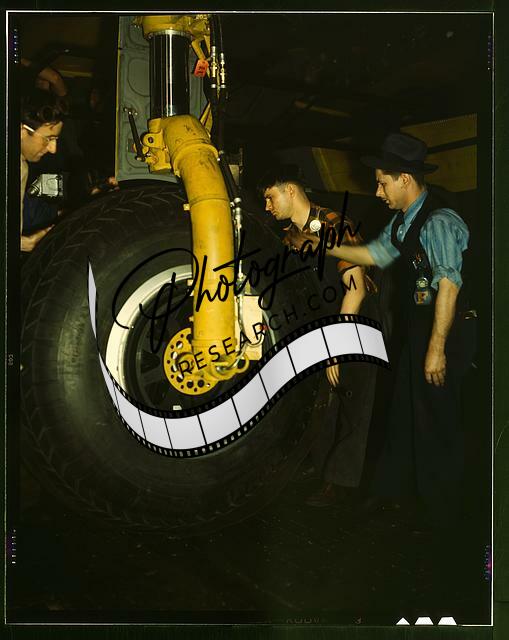 Title: Carefully trained women inspectors check and inspect cargo transport innerwings before they are assembled on the fuselage, Douglas Aircraft Company, Long Beach, Calif.