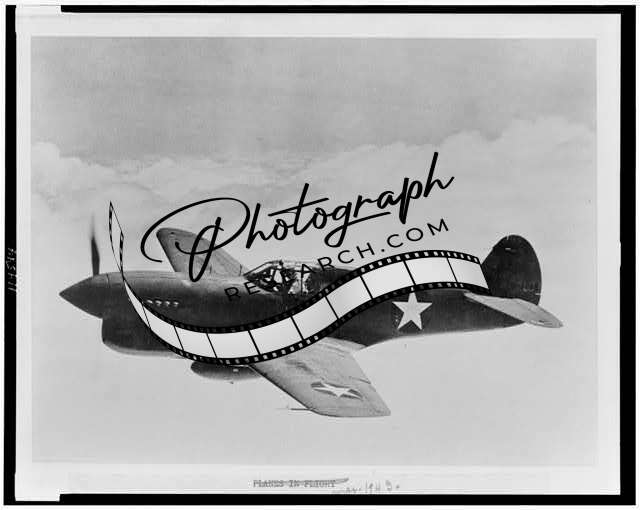 Aerial view of P-40 single-engine fighter plane in flight,World War II,WWII,1943