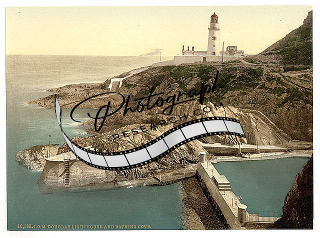 Douglas Lighthouse,bathing cove,Isle of Man,England,1890s
