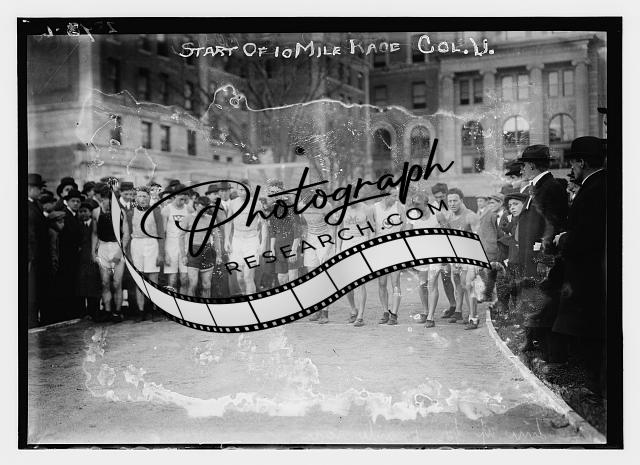Start of 10 mile race -- Col. U.,athletes lined up,spectators,1910-1915