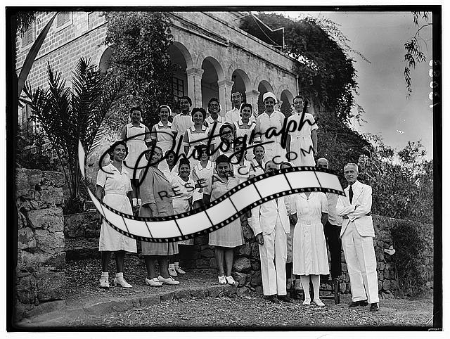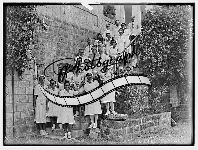 Dr. H. Torrance,Tiberias,Staff at entrance of hospital,Israel,Middle East,c1942