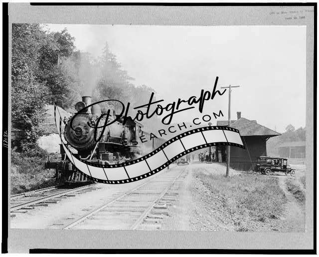 New York,Eagle Bay,Railroad Station,RR,c1910,NY,Train,Locomotive,Automobile