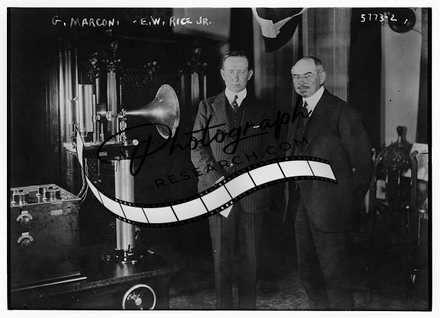E.W. Rice Jr,G. Marconi,speakers,communication devices,men,Bain News Service