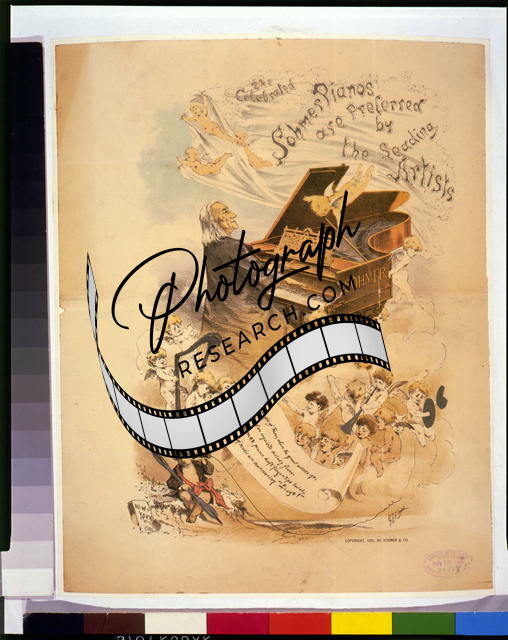 Photo,Celebrated Sohmer Pianos,Man Playing Piano on Cloud,c1886,Cherubs