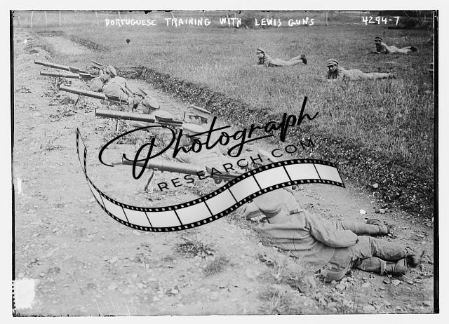 Portugese train with Lewis Guns,soldiers,artillery,military,trench,Bain News