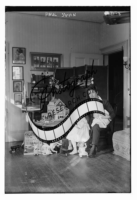 Paul Swan,man playing with children,baby,little girl,doll house,1917,toys