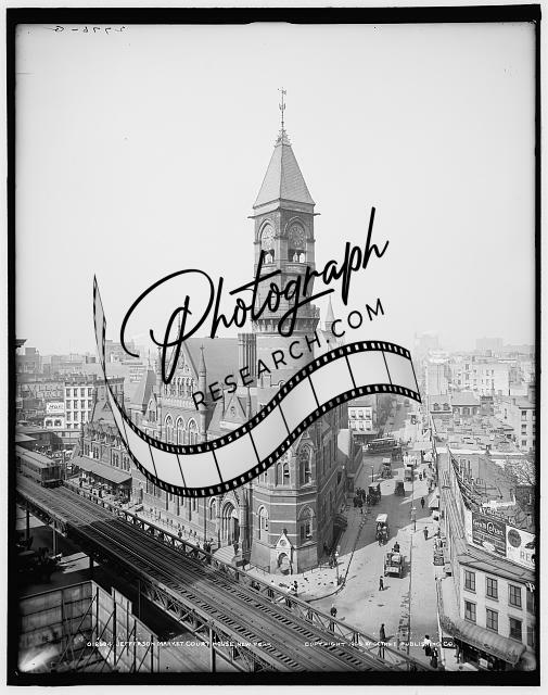 Jefferson Market Court House,elevated railroads,streets,buildings,New York,c1905
