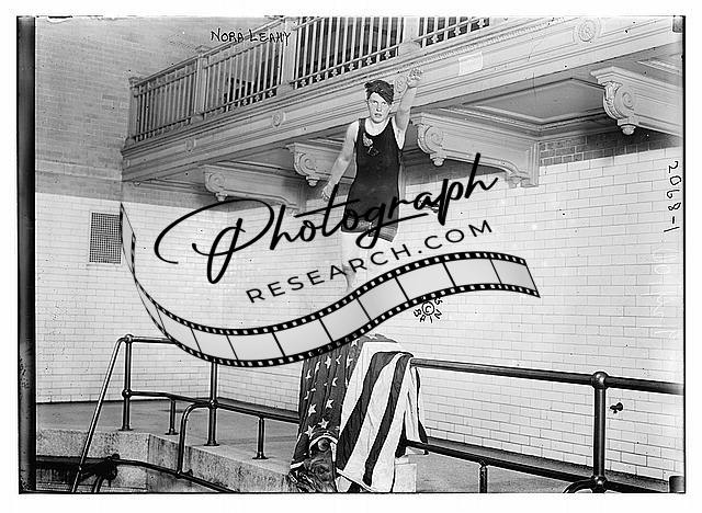 Nora Leahy,swimming,woman,American flag,posed on one foot