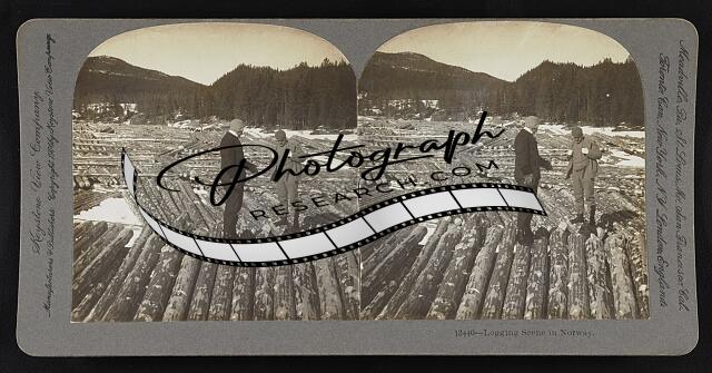 Dragging out logs to be floated to the saw mill--one of the first steps in the m