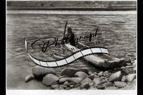 Nez Perce Canoe,Indian in canoe by shore,c1910,Edward S Curtis,photographer