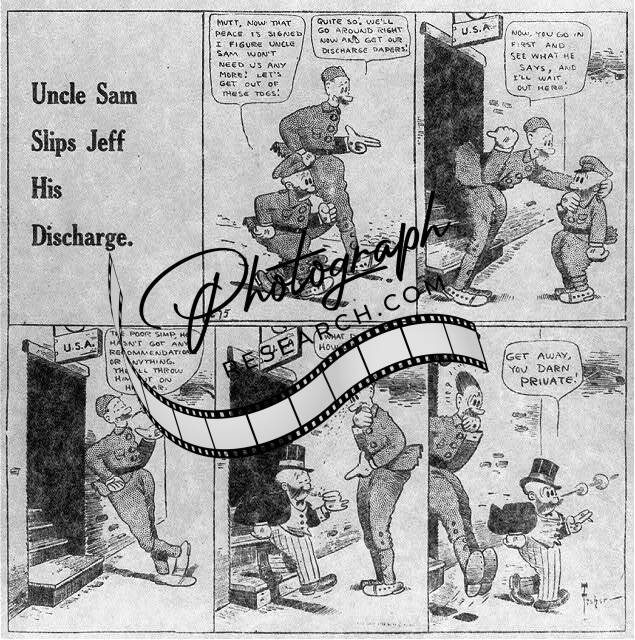 Uncle Sam slips Jeff discharge,Comic Strip,Mutt & Jeff cartoons,c1919,Bud Fisher