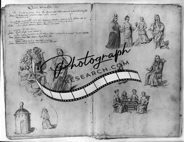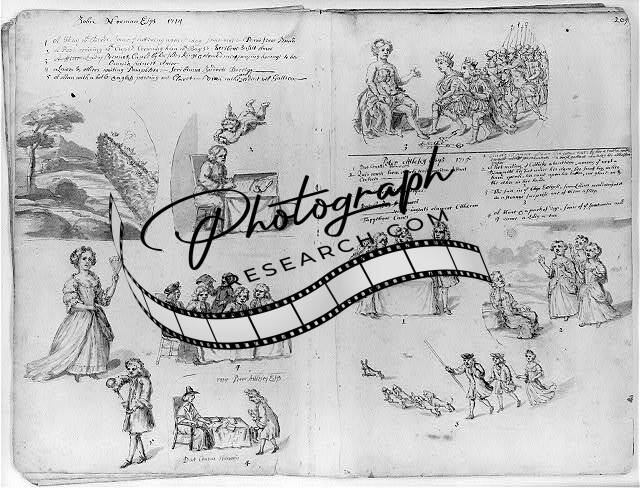 Drawings of annual guild days of Norwich,England,1705,Royal Free-School,people 6