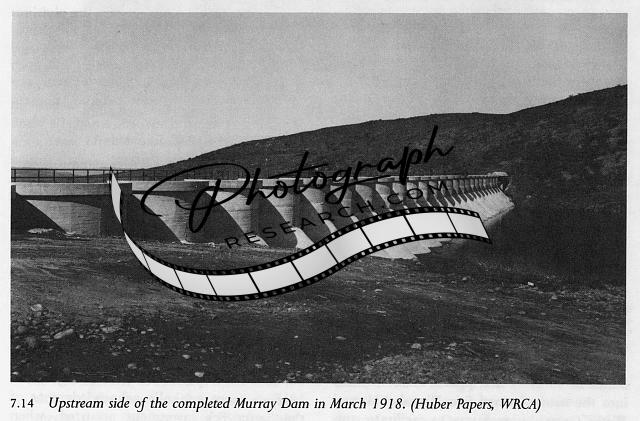 Upstream side of the completed Murray Dam in March 1918 (Huber Papers, WRCA)