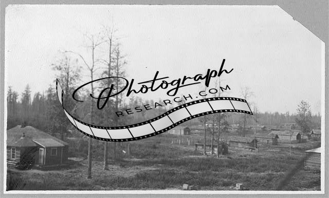 Rows of log cabins in a wooded field,Alaska,AK,Village,United States,1900-1916