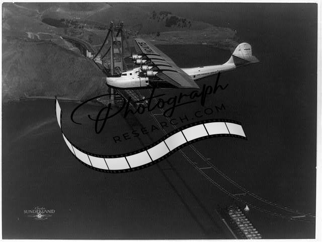 Philippine Martin Clipper ship,flight over Golden Gate Bridge,north,CA,c1936