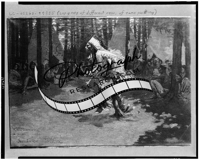Indian dance,feather headdress,peacepipe,ceremonies,Natives,F Remington,c1903