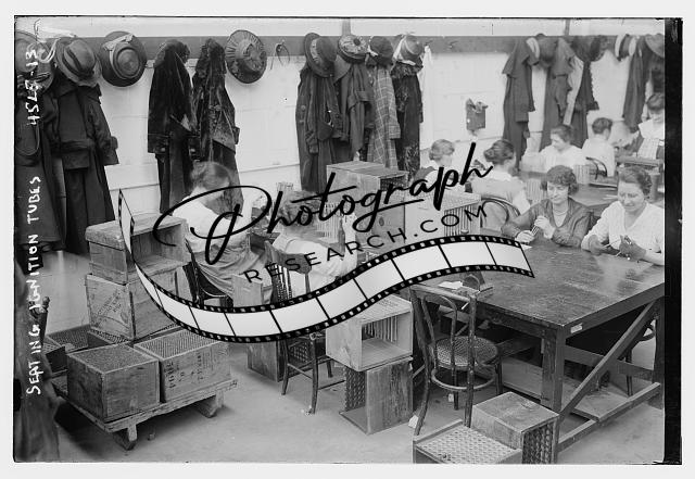 Crimping ignition tubes,woman working,machinery,Bain News Service