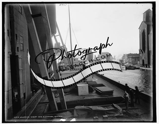 Unloading wheat,elevators,grain,piers,wharves,shipping,Buffalo,New York,NY,c1900