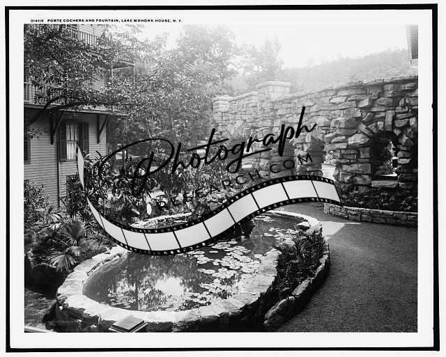 Porte cochere,fountain,hotels,inns,Lake Mohonk Mountain House,New York,NY,c1900