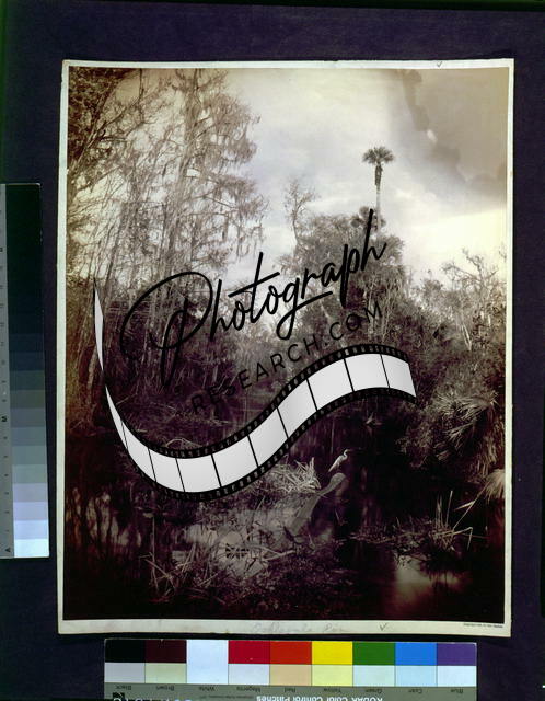 Oklawaha River,bird,one leg,log,trees,animals,Florida,FL,George Barker,c1886